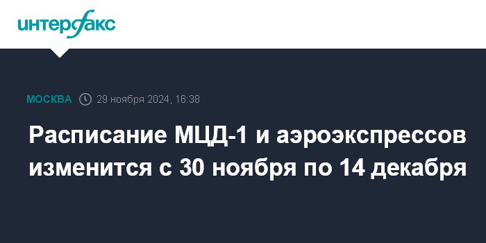 Расписание МЦД-1 и аэроэкспрессов изменится с 30 ноября по 14 декабря
