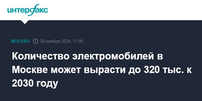 Москва. 30 ноября. INTERFAX.RU - Заммэра Москвы по вопросам транспорта Максим Ликсутов прогнозирует увеличение количества электромобилей в столице до 320 тыс. к 2030 году/