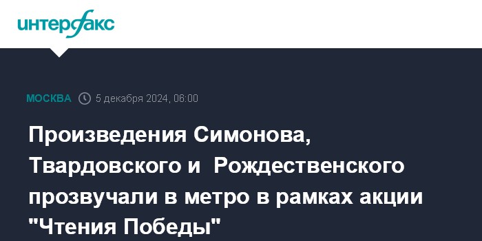 Произведения Симонова, Твардовского и Рождественского прозвучали в метро в рамках акции "Чтения Победы"