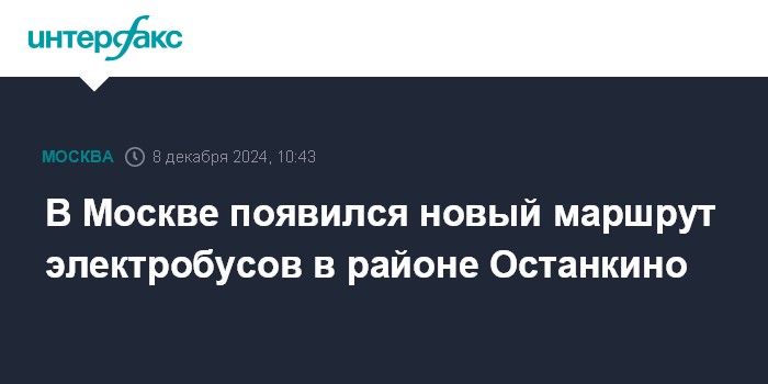 Москва. 8 декабря. INTERFAX.RU - Электробусы вышли на новый 561 маршрут в Москве от МЦД-3 (D3) "Останкино" до станции метро "Алексеевская", в будние дни на маршруте будут работать шесть автобусов, сообщили в столичном дептрансе в воскресенье.