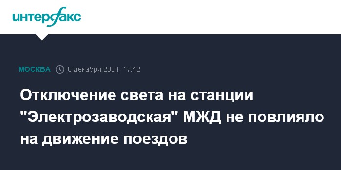 Отключение света на станции "Электрозаводская" МЖД не повлияло на движение поездов