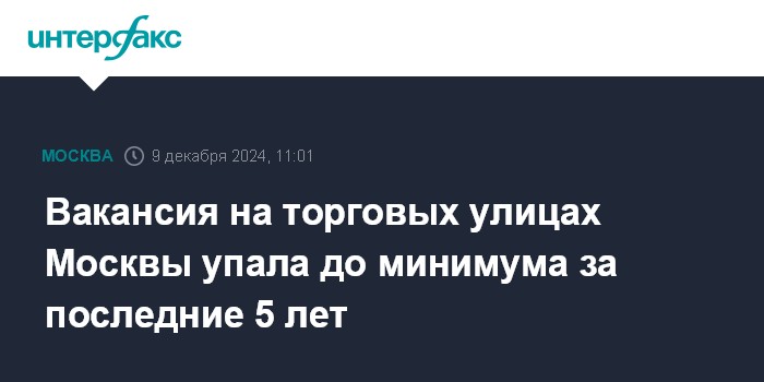 Вакансия на торговых улицах Москвы упала до минимума за последние 5 лет