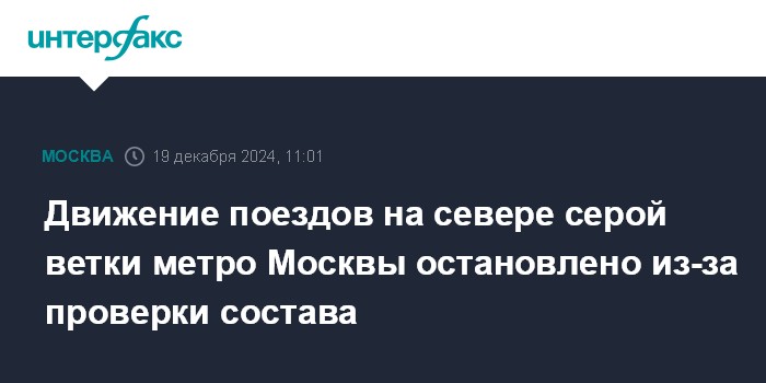 Москва. 19 декабря. INTERFAX.RU - В столичном дептрансе сообщили об остановке движения поездов на северном участке "серой" ветки из-за проверки состава.