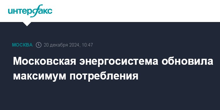 Москва. 20 декабря. INTERFAX.RU - Потребление мощности в энергосистеме Москвы и области обновил исторический максимум, сообщил "Системный оператор" в в Telegram.