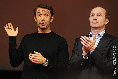 Актеры Владимир Машков и Андрей Панин на премьере фильма "Кандагар" режиссера Андрея Кавуна в кинотеатре "Октябрь"