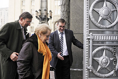 Экс-госсекретарь США Мадлен Олбрайт перед встречей с министром иностранных дел России Сергеем Лавровым