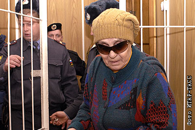 78-летняя Александра Звонарева, обвиняемая в мошенничестве, во время заседания Хамовнического районного суда
