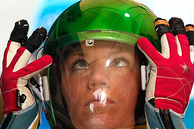 Австралийская саночница Ханна Кэмпбелл-Пегг надевает шлем