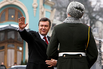 Новоизбранный президент Украины Виктор Янукович во время торжественного марша войск в рамках церемонии инаугурации