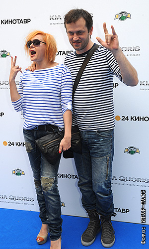 Режиссер Василий Сигарев с супругой актрисой Яной Трояновой перед началом церемонии открытия XXIV Открытого Российского кинофестиваля "Кинотавр".