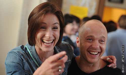 Актеры Ольга Сутулова и Евгений Стычкин перед просмотром фильма режиссеров Натальи Меркуловой и Алексея Чупова "Интимные места".