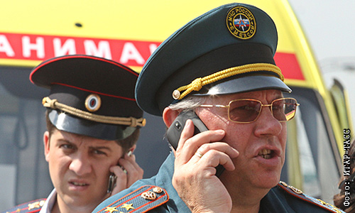 Глава пресс-службы ГУ МЧС России по Москве Виктор Бирюков (справа) у входа на станцию метро "Охотный ряд".
