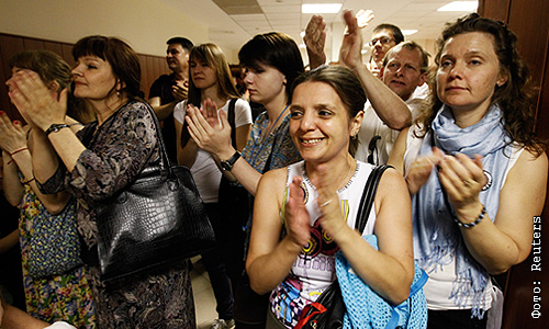 В здании Мосгорсуда, где рассматривается уголовное дело о массовых беспорядках на Болотной площади 6 мая.