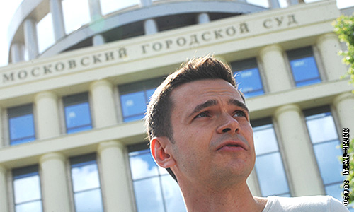 Член бюро движения "Солидарность" Илья Яшин во время пикета у здания Мосгорсуда, где рассматривается дело о беспорядках на Болотной площади.