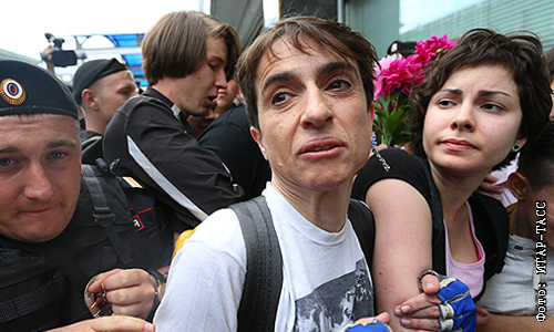 У здания Госдумы РФ во время акции "День поцелуев-4" против законопроекта о запрете пропаганды гомосексуализма.