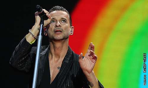 Солист группы Depeche Mode Дэйв Гaан во время выступления на концерте на стадионе "Локомотив".