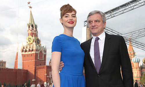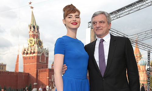 Президент компании Christian Dior Сидни Толедано и французская актриса, модель Луиза Бургуэн перед началом показа осенне-зимней коллекции модного дома Dior на Красной площади.