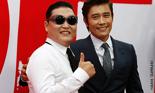 Актер фильма Ли Бьюн Хун со своим земляком певцом PSY.