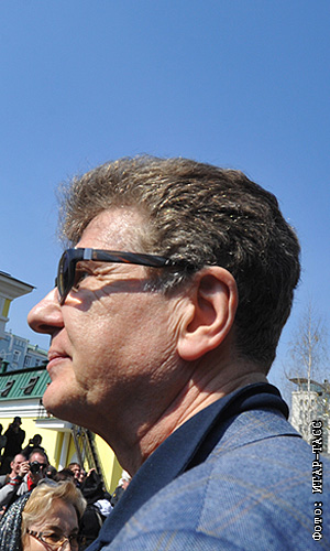 Актер Игорь Костолевский у храма Святителя Филиппа, где проходит отпевание актера Михаила Козакова, в Мещанской слободе.