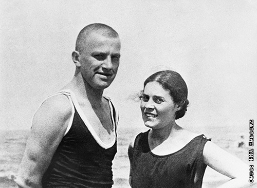 Советский поэт Владимир Владимирович Маяковский (1893-1930) и Лиля Юрьевна Брик (урождённая Лиля Уриевна Каган 1891-1978) в Германии на курорте Норден Зее в 1922 году.