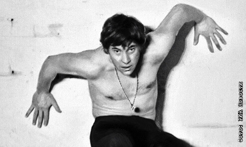 Сцена из спектакля "Гамлет" Театра драмы и комедии на Таганке. Актер Владимир Высоцкий в роли Гамлета.