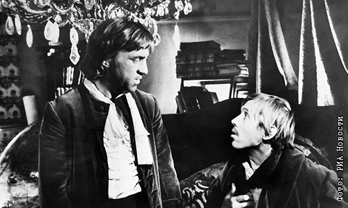 Владимир Высоцкий в роли арапа и Владимир Золотухин в роли Фильки в фильме "Сказ о том, как царь Петр арапа женил" (режиссер Александр Митта).