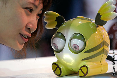 На Международной выставке роботов в Тайпее представлена игрушка "Instant Messenger Robot". Робот может подключаться к системе Microsoft messenger, и пользователь, таким образом, получает возможность отправлять сообщения "разговаривая" с роботом