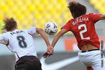 Игроки "Москвы" Дмитрий Тарасов и "Спартака" Кристиан Майдана (слева направо) в матче 1/8 финала Кубка России по футболу: "Спартак" (Москва) – "Москва" (Москва)