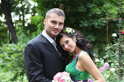 Сын лидера Партии регионов Украины Виктор Янукович-младший с супругой Ольгой Корочанской после церемонии бракосочетания