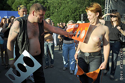 Участники XI Международного фестиваля байкеров в поселке Ольгино
