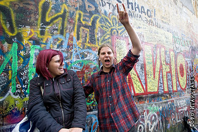Молодежь у стены Виктора Цоя на Старом Арбате