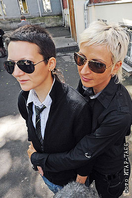 Ирина Фет и Ирина Шипитько (слева направо), которым было отказано в заключении однополого брака в Тверском ЗАГСе, у здания Тверского суда
