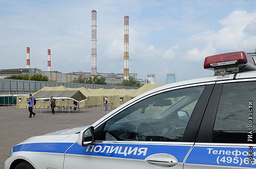 Палаточный лагерь для задержанных мигрантов в Иртышском проезде в Москве.
