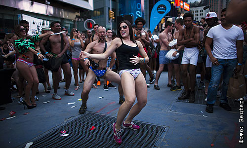 Жители Нью-Йорка разделись, чтобы побить рекорд Гиннеса по количеству людей, собравшихся на улице в одном нижнем белье.