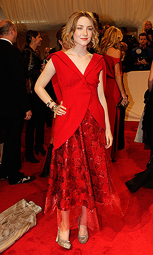 Актриса Сирша Ронан на торжественном открытии выставки "Alexander McQueen: Savage Beauty" в Метрополитен-музее в Нью-Йорке