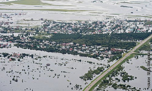 Залитый водой поселок Владимировка в 3 км от Благовещенска во время облета подтопленных территории из-за разлива реки Буреи в Амурской области.