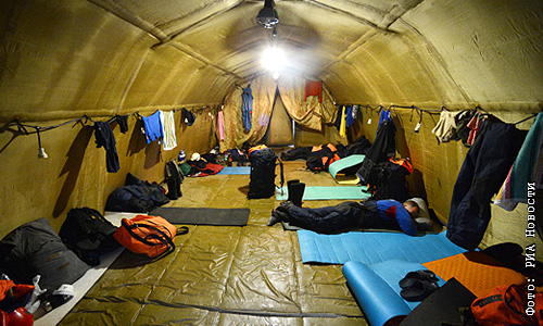 Спасатели МЧС отдыхают в надувном модуле в селе Новокиевский Увал Мазановского района Амурской области.