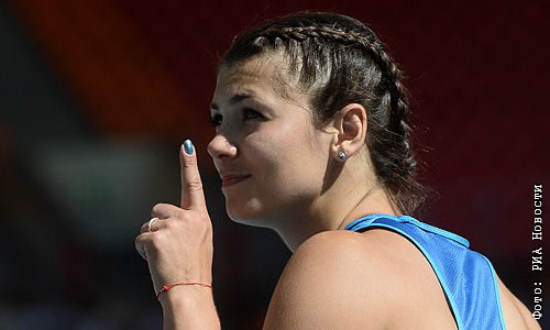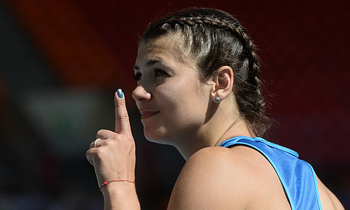 Украинка Маргарита Дорожон в квалификационных соревнованиях по метанию копья среди женщин на чемпионате мира по легкой атлетике в Москве.