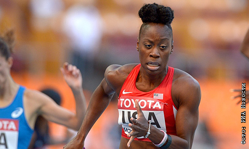 Американская спортсменка в предварительном забеге эстафеты 4х400 м среди женщин на чемпионате мира по легкой атлетике в Москве.
