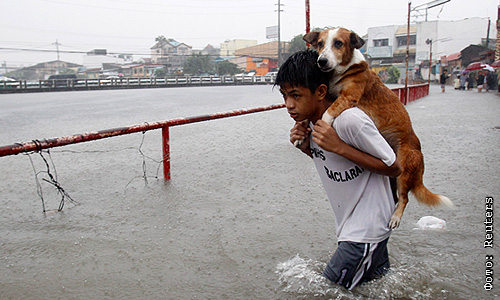 Наиболее опасная ситуация сложилась в самых бедных кварталах Манилы: из-за быстрого повышения уровня воды жители вынуждены подниматься на крыши домов и там ждать прибытия спасателей.