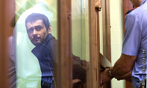 Обвиняемый в массовом расстреле Сергей Помазун в Белгородском областном суде. 31-летний Помазун открыл огонь в оружейном магазине в центре Белгорода, убив трех человек, а после выхода на улицу расстрелял еще троих, в том числе двух школьниц. При задержании Помазун ранил одного из стражей порядка. (Съемка через стекло).