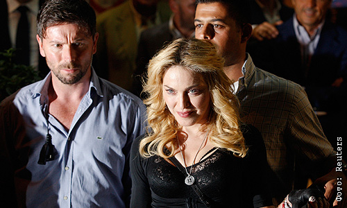 В Риме певица Мадонна поприсутствовала на открытии фитнес-центра "Hard Candy" и улыбнулась.