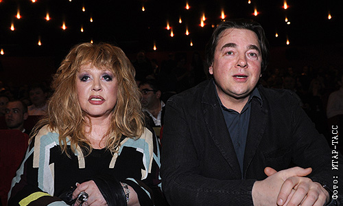 Певица Алла Пугачева и генеральный директор Первого канала Константин Эрнст на премьере фильма Никиты Михалкова "Утомленные солнцем 2: Цитадель" в кинотеатре "Октябрь".