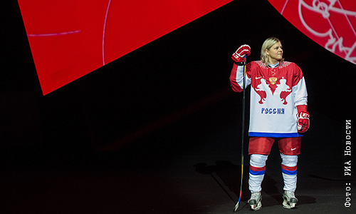 Игрок сборной России по хоккею Александра Капустина во время церемонии презентации новой формы мужской и женской сборных России по хоккею.