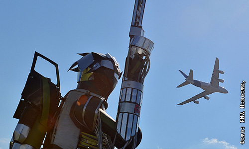 Самолет Airbus А380 во время демонстрационного полета на Международном авиационно-космическом салоне МАКС - 2013 в Жуковском.