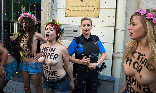 Акция девушек FEMEN у посольства Украины в Берлине.