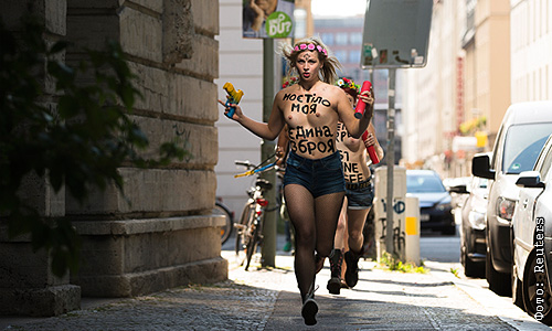 Акция девушек FEMEN у посольства Украины в Берлине.