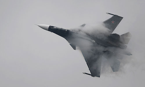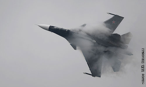 Истребитель Су-30СМ на Международном авиационно-космическом салоне МАКС-2013 в Жуковском.