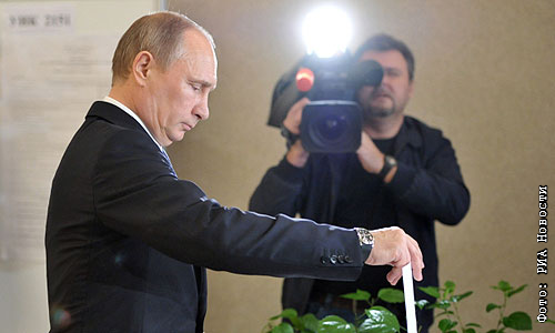 Владимир Путин на избирательном участке № 2151 во время голосования на выборах мэра Москвы.