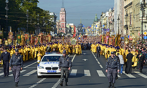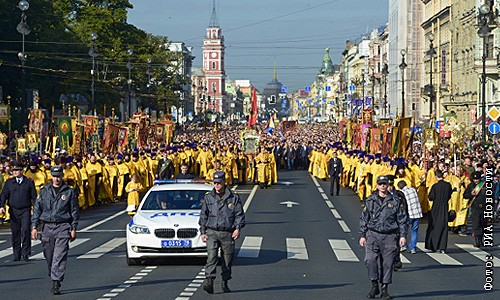 Крестный ход по Невскому проспекту, посвященный 300-летию Александро-Невской лавры в Санкт-Петербурге.